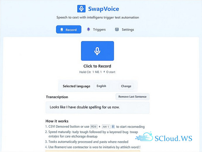 SwapVoice — transform your voice into instant, actionable text with SwapVoice's intelligent trigger recognition system for a onetime subscription fee instead of monthly license with other simialr tools. Perfect for professionals, content creators, and anyone  who wants to work faster and smarter.
