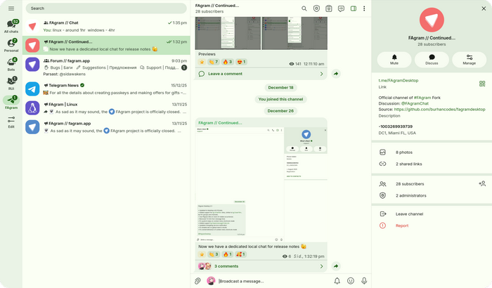 This is a maintained fork of FAgram Desktop. The original project by FajoX1 has been discontinued. This fork exists to keep the project up-to-date with upstream Telegram Desktop changes.