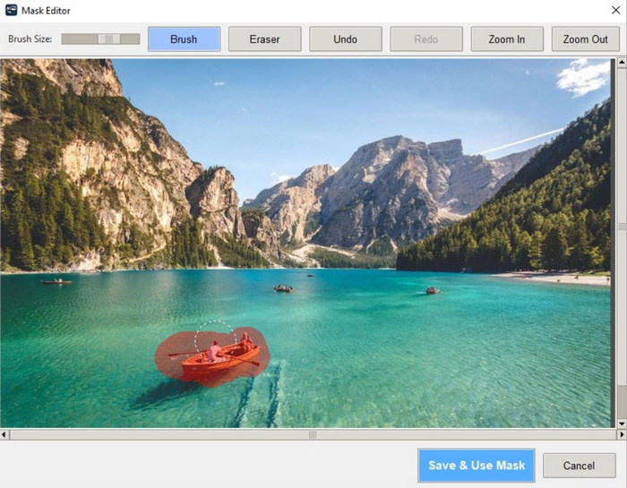 - Intuitive Masking Editor: Easily paint over objects with adjustable brush sizes, an eraser, and zoom tools.