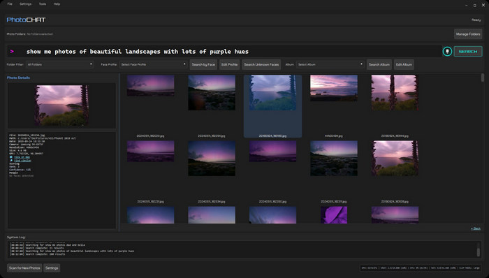PhotoCHAT AI - Your Entire Photo Library, Instantly Searchable. Turn years of photos into a searchable memory. Type what you remember—«golden retriever at the beach,» «Bella standing next to a tall building from Mar 21,» or «hiking at sunrise»—and find the exact shots in seconds. PhotoCHAT AI runs entirely on your computer. No uploads. No accounts. No subscriptions.