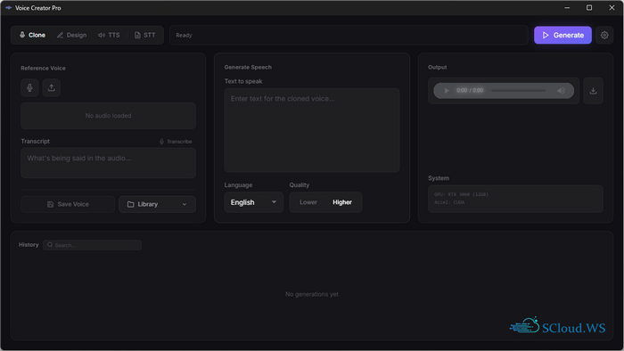 Voice Creator Pro — clone any voice with 3 seconds of audio or describe your perfect voice and bring it to life. All-in-one human-sounding local AI voice generator. Voice cloning, voice design, text-to-speech, and speech-to-text, with full REST API access.