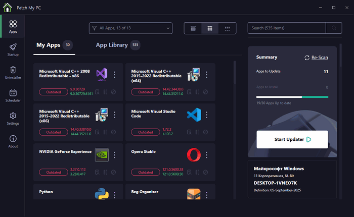When you open Patch My PC Updater, it will scan your system for outdated programs.