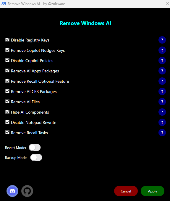 RemoveWindowsAI — force remove Copilot and Recall in Windows. With the upcoming 25H2 Update to Windows 11 Microsoft will begin to implement Copilot and Recall. These features are a major security risk and very intrusive to the users experience.