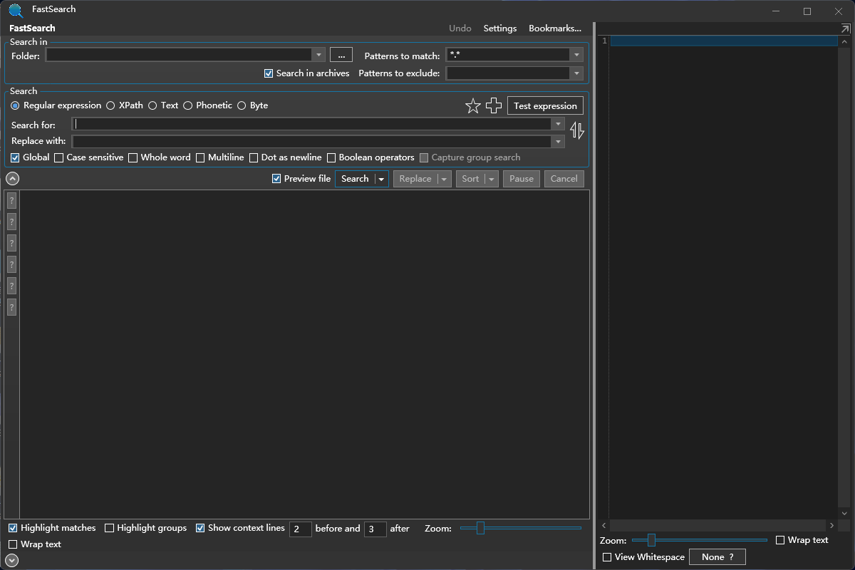 Built for efficiency, FastSearch empowers power users. Bookmark sophisticated content search patterns for one-click reuse later. Experiment with complex queries in a dedicated Test window without risk. Save your search result sets for documentation or further analysis.