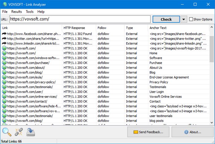 Vovsoft Link Analyzer is a user-friendly software that allows users to delve into the structure of any input URL and thoroughly examine all the links present within the webpage. Whether you're a web developer, SEO professional, or simply curious about the links on a website, this URL analyzer software is your go-to tool for in-depth link analysis. The program will list all links on a webpage with ease. It can export the results into CSV or TXT files.